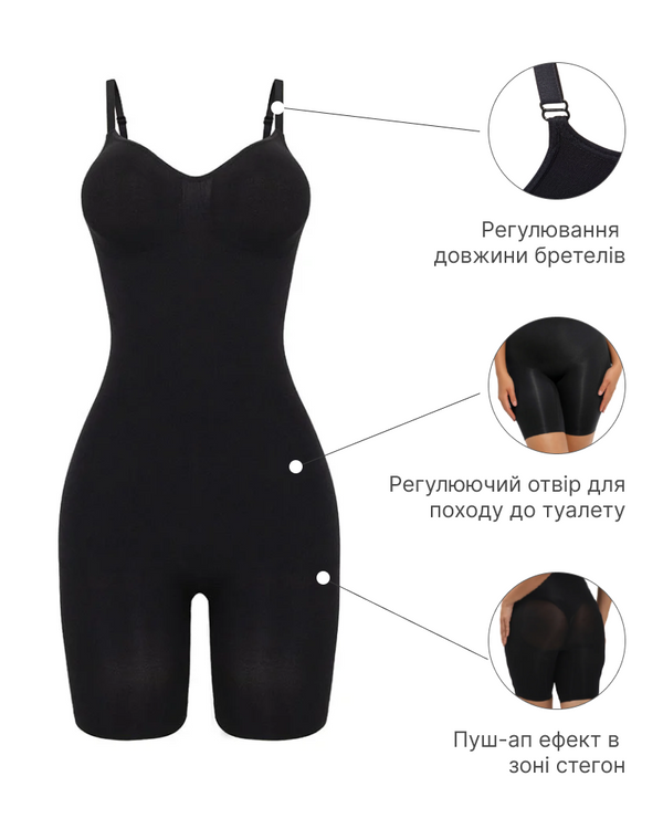 Підтягує груди, зменшує живіт, моделює талію, округлює сідниці